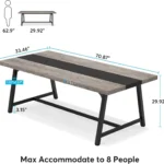 • [LARGE LONG DINING TABLE]: Overall size: 70.87″L x 33.46″W x 29.92″H. Such a large dining table can comfortably seat 6-8 people. The desktop is spacious enough and easily accommodates your big family or friends to have a happy and comfortable dining experience.