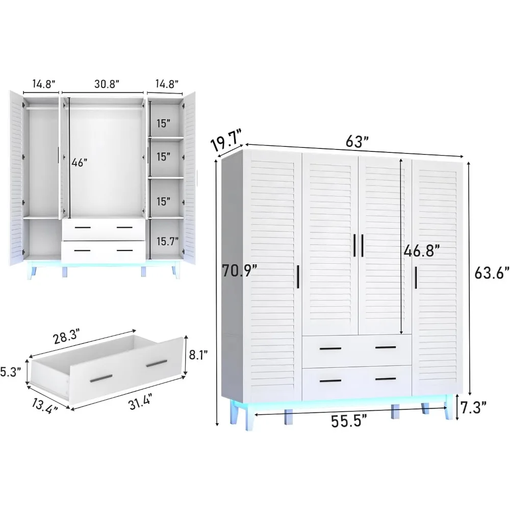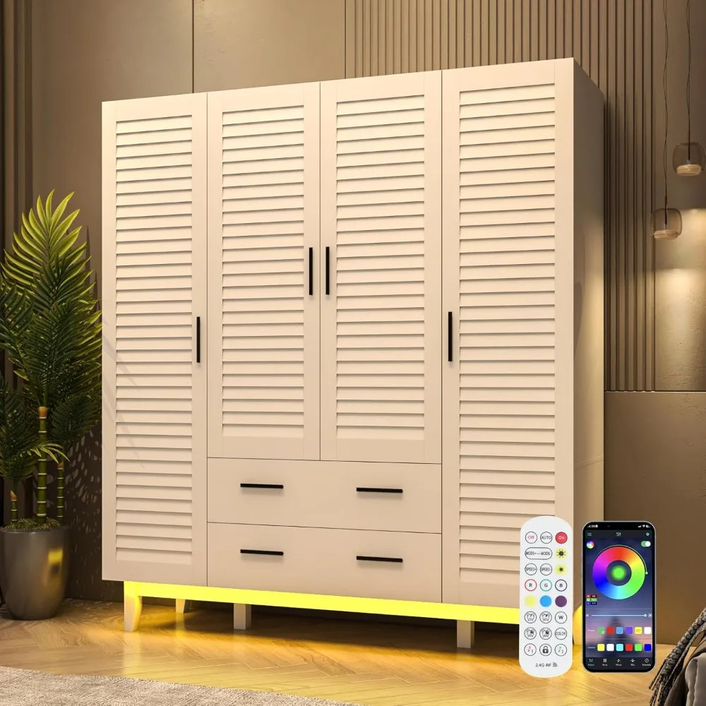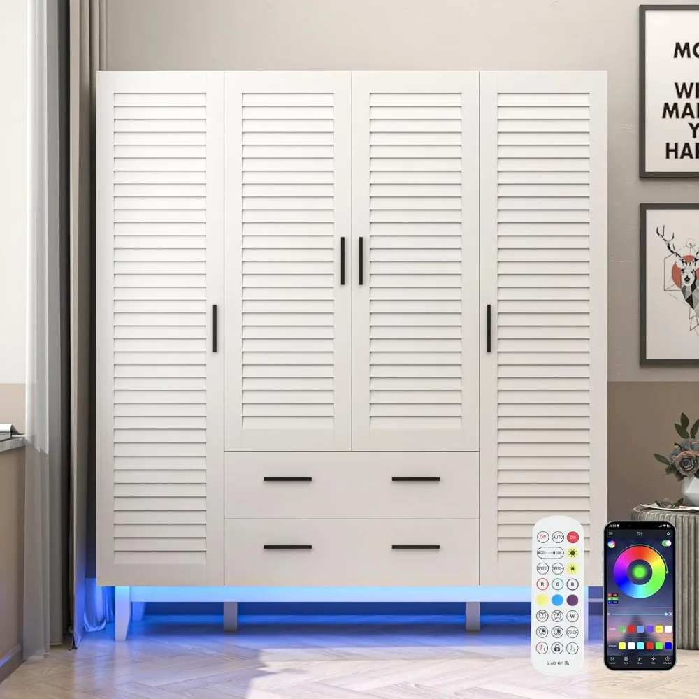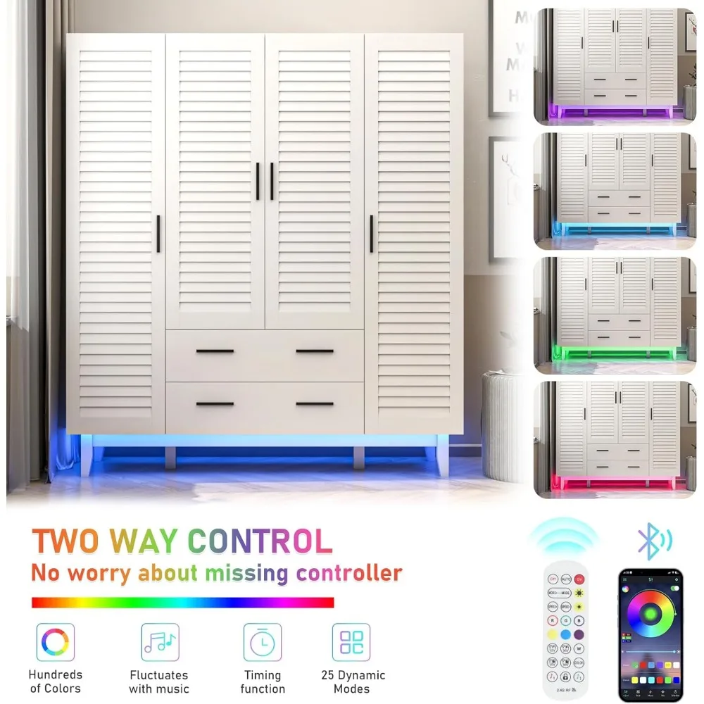 - 【Cabinets with Multiple RGB Lights】Wardrobe closet with LED lights with variable RGB colors, control the different styles of lighting effects you want by manual buttons or mobile apps. This LED armoire with drawers can enrich your bedroom space and can also be used as a night light to avoid darkness