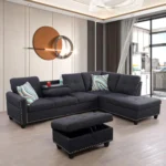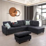 - 【Sofas & Couches for Living Room】This 3-piece sofa-and-chaise sectional has an L-shaped silhouette and seats four people for the big game or movie night. It also includes two toss pillows along with a matching ottoman that has interior storage space for blankets and more