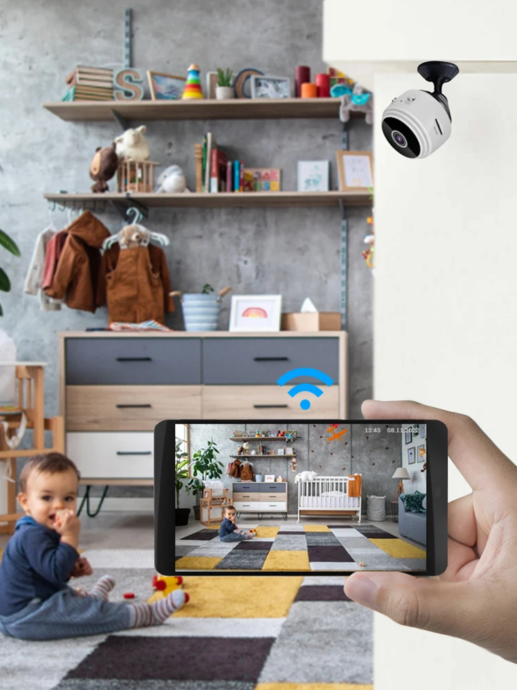 With 6 high-quality night vision LEDs, this wifi mini camera  provides clear and detailed images in low-light conditions, allowing you to keep an eye on your baby, pet or home day and night.The advanced night vision technology ensures that you can see every detail even in complete darkness, making it perfect for monitoring your loved ones or securing your home.